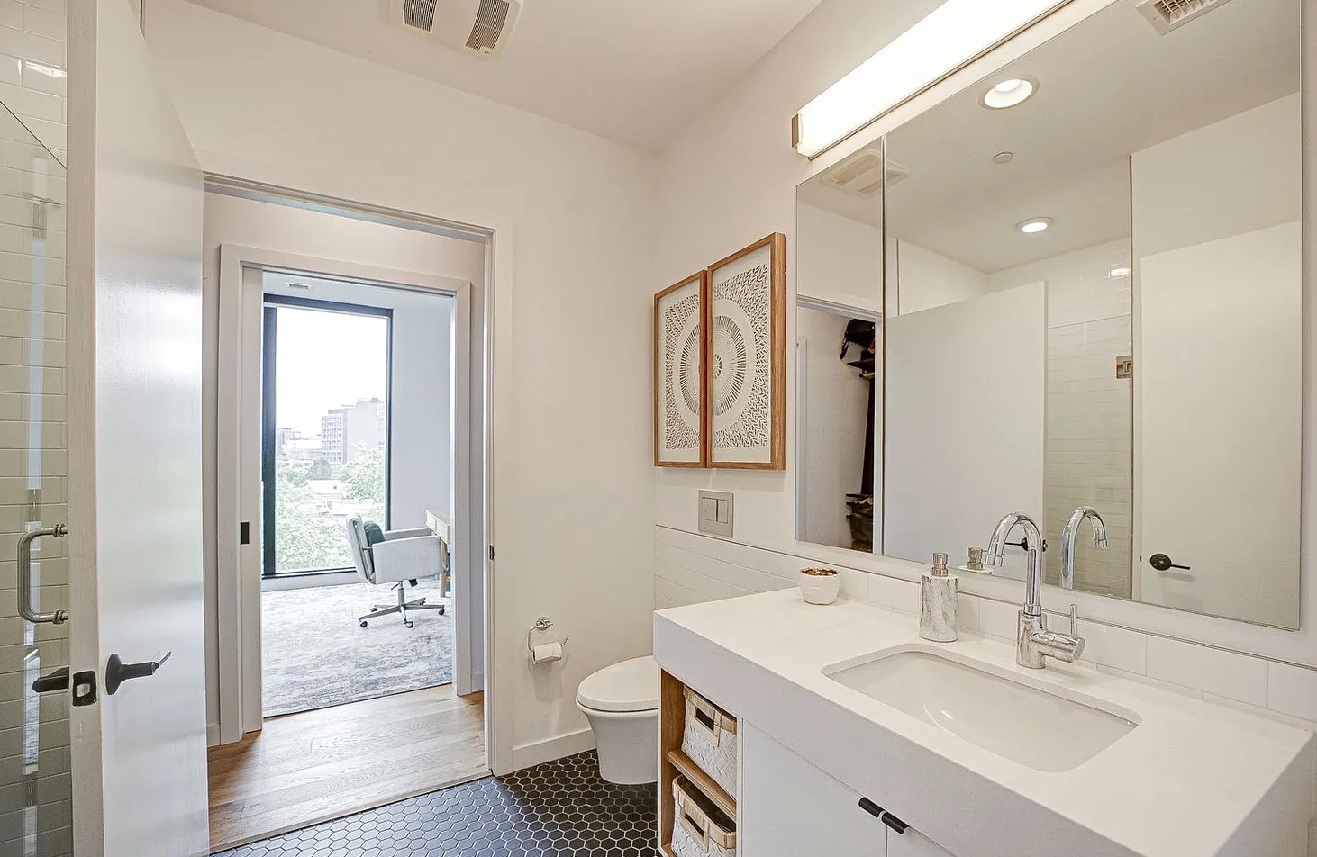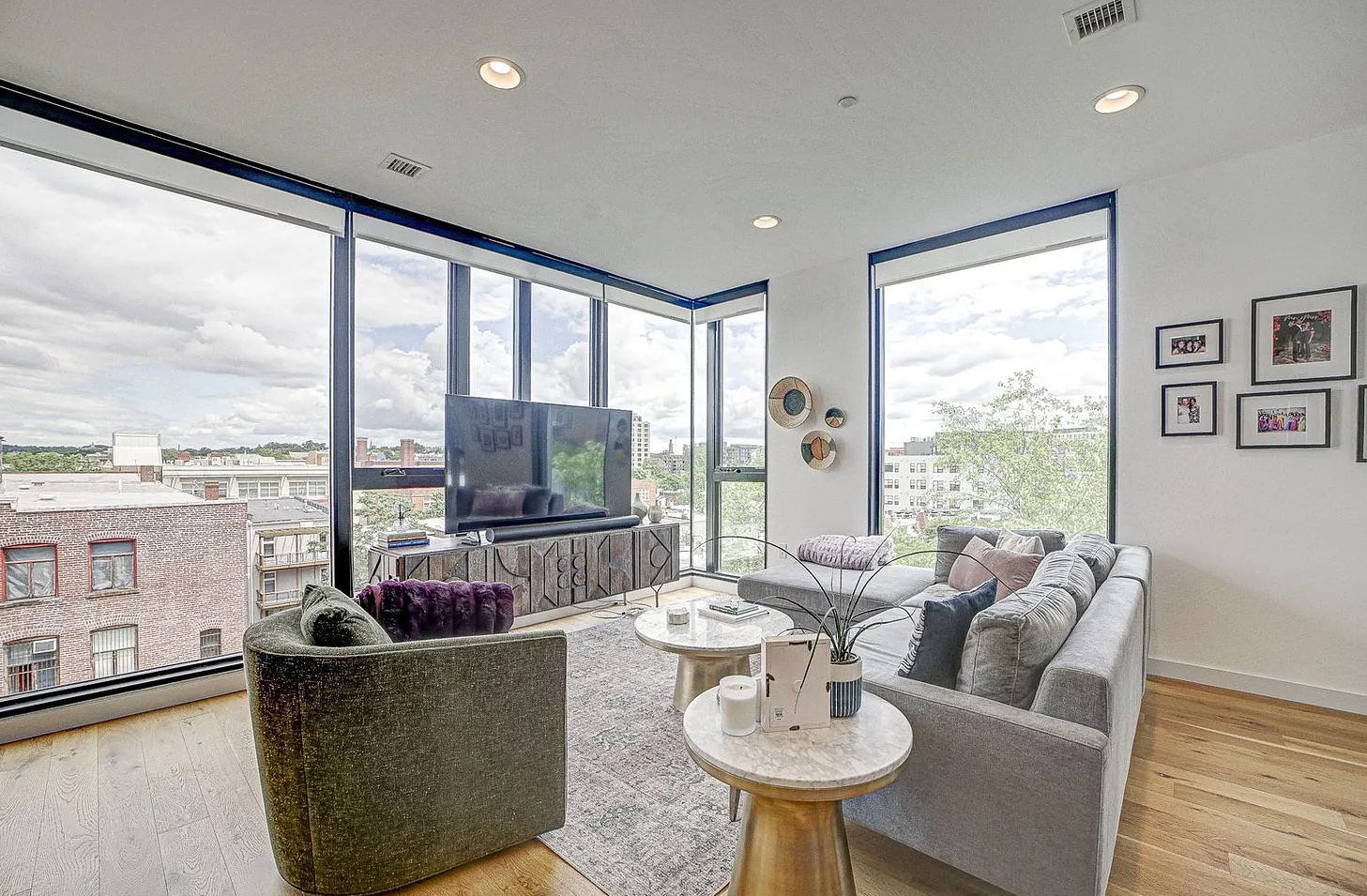 Welcome to Chapman Stables where modern luxury and thoughtful design meets exceptional urban living. Built in 2018 and perfectly nestled between the vibrant Shaw and NoMa neighborhoods. Penthouse 525 is a stunning two-level residence offering three bedrooms, three full bathrooms, and over 1,200 square feet of interior living space, plus a private terrace with sweeping city views. This top-floor unit is filled with natural light from the expansive floor-to-ceiling windows, beautifully complemented by custom shades and soaring 9+ foot ceilings. Inside, you'll find a modern open layout with wide-plank wood flooring, sleek European cabinetry, a large granite kitchen island, and premium Bosch stainless-steel appliancesperfect for both entertaining and everyday living. A handcrafted Texan spiral staircase leads to the upper-level primary suite, which showcases spectacular views. Each bedroom includes an ensuite bathroom for ultimate comfort and privacy, while the upgraded Elfa walk-in closets maximize storage and organization. Additional conveniences include a full-size stacked washer and dryer and one assigned garage parking space. Chapman Stables offers residents an impressive collection of amenities, including a beautiful rooftop terrace with gas grills and monument views, an expansive lobby with exposed brick and modern design, a club room, and bicycle storage. On the ground floor, enjoy Republic Cantina, a popular Tex-Mex restaurant offering a convenient spot for brunch, happy hour, or dinner. The building's location is unbeatablejust a few blocks from an array of cafes, restaurants, beer gardens, grocery stores, dog parks, and two Metro stations.